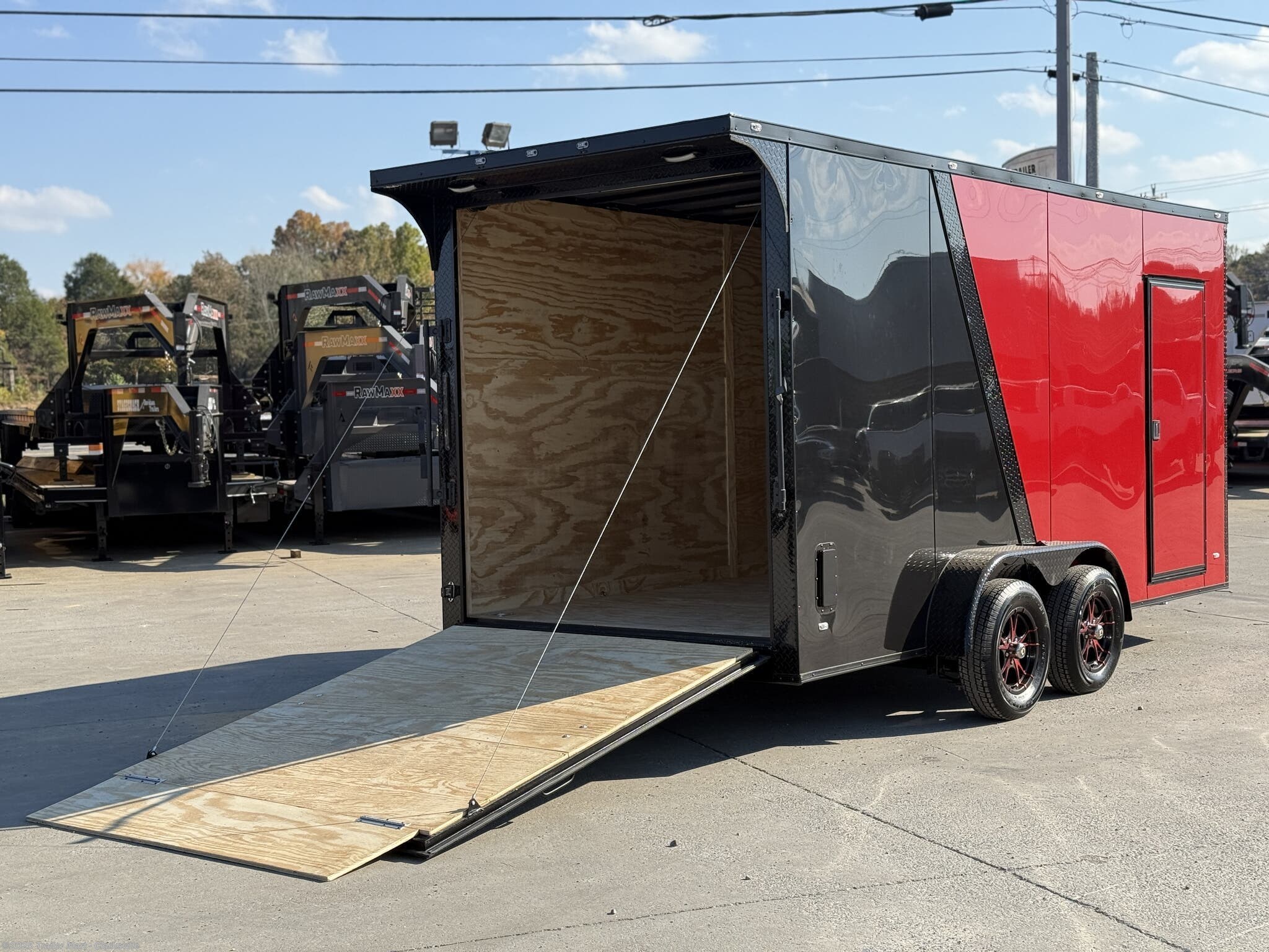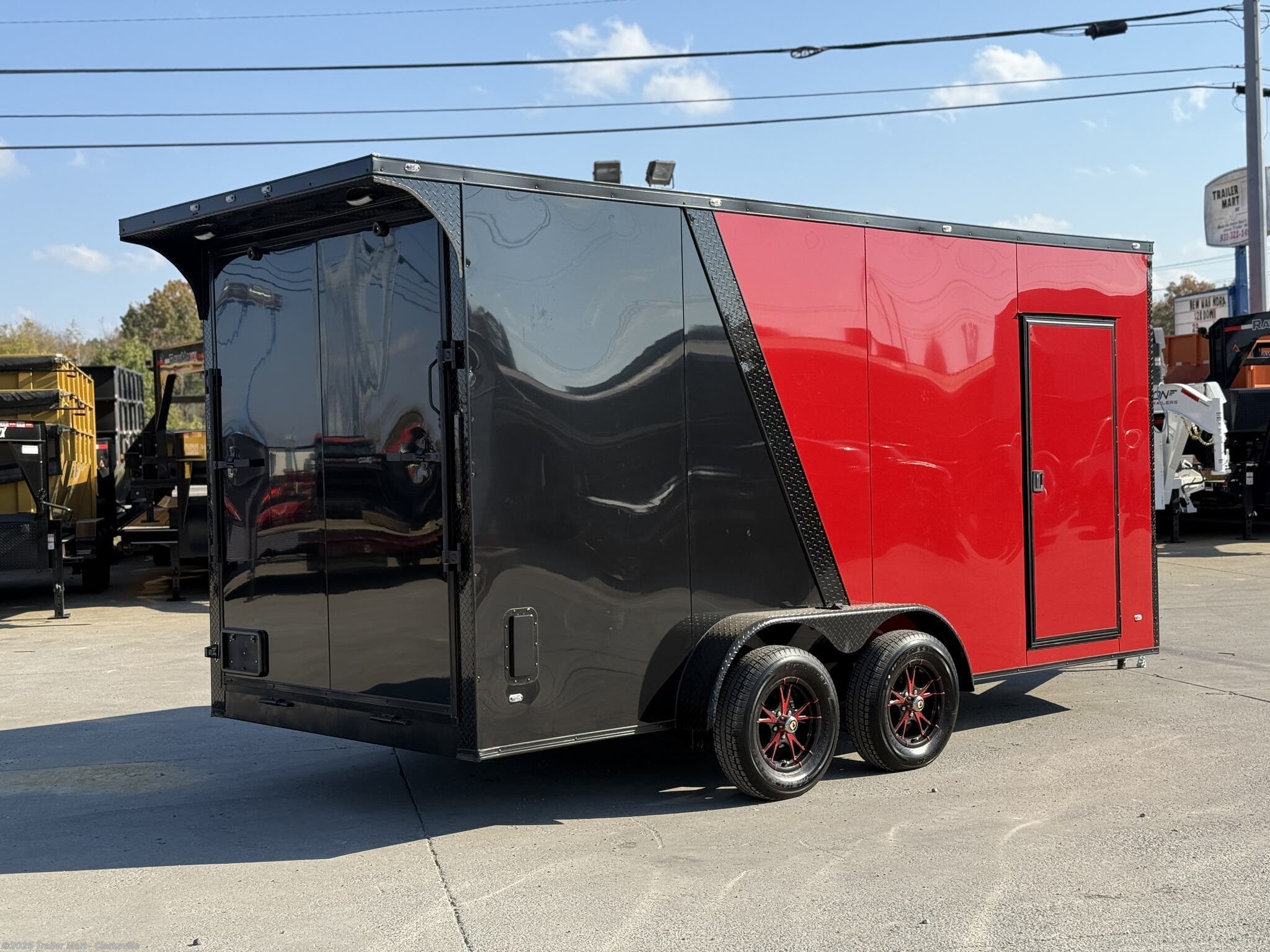 Introducing the Black Label 7x16, this trailer comes fully equipped to safely and smoothly carry your toys tools, or new dining room set! Featuring smooth screwless .080 polycore siding, a full blackout package,aluminum mag wheels, full box tubing frame, and 4 floor mounted d-rings, a built in aluminum shelf, and a wing with load lights, it leaves nothing to be desired