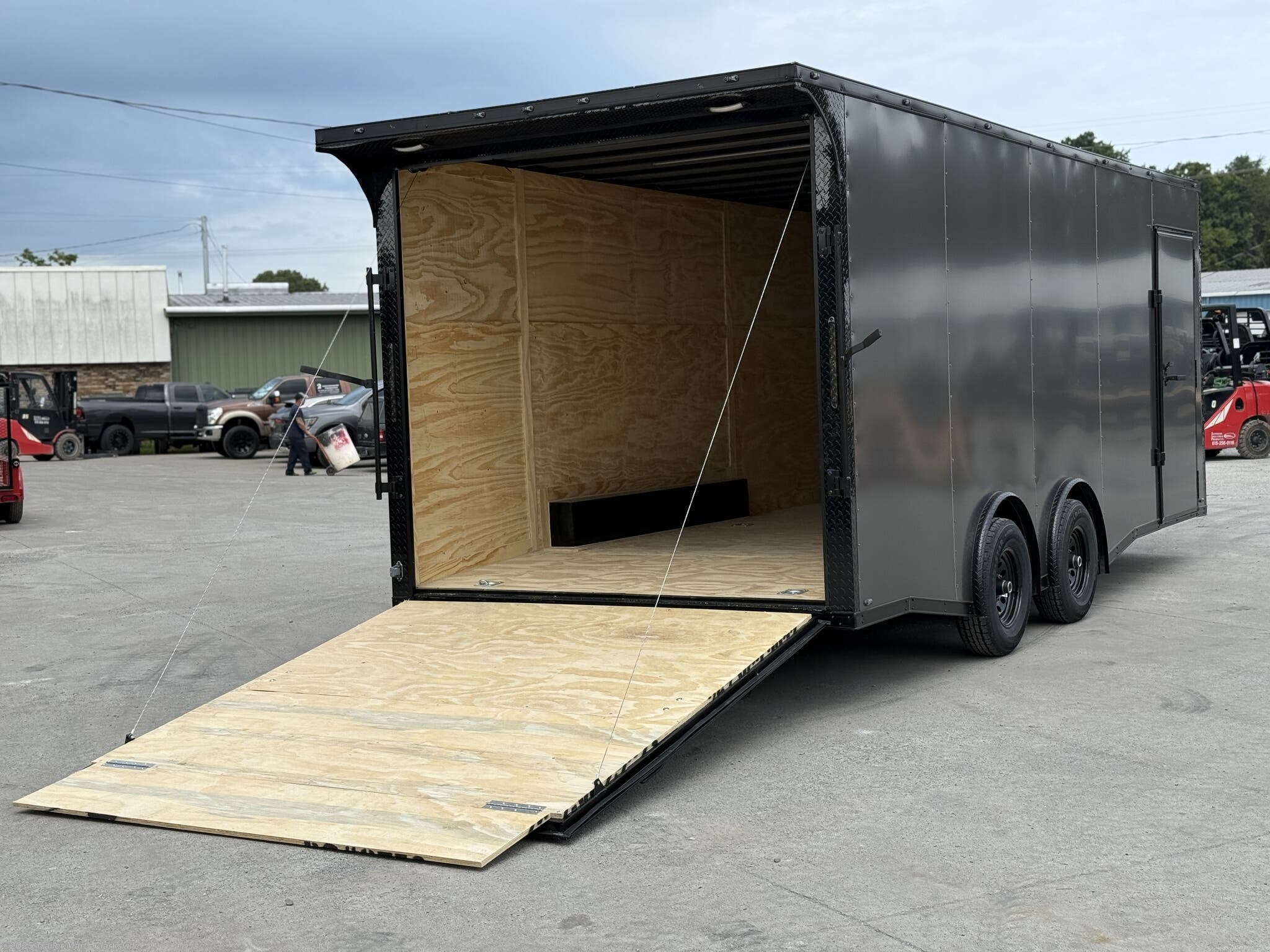 Introducing the Black Label 8.5X20, this trailer comes fully equipped to safely and smoothly carry your toys tools, or new dining room set! Featuring smooth semi-screwless .080 polycore siding, a full blackout package, full box tubing frame, and 4 floor mounted d-rings, it leaves nothing to be desired.