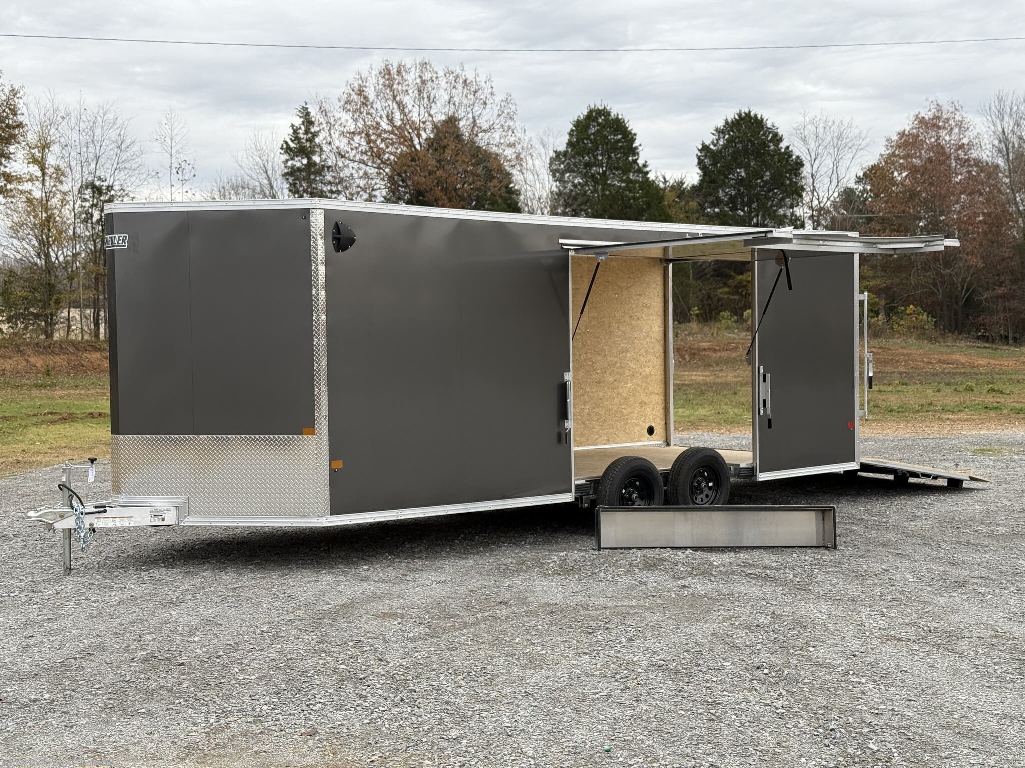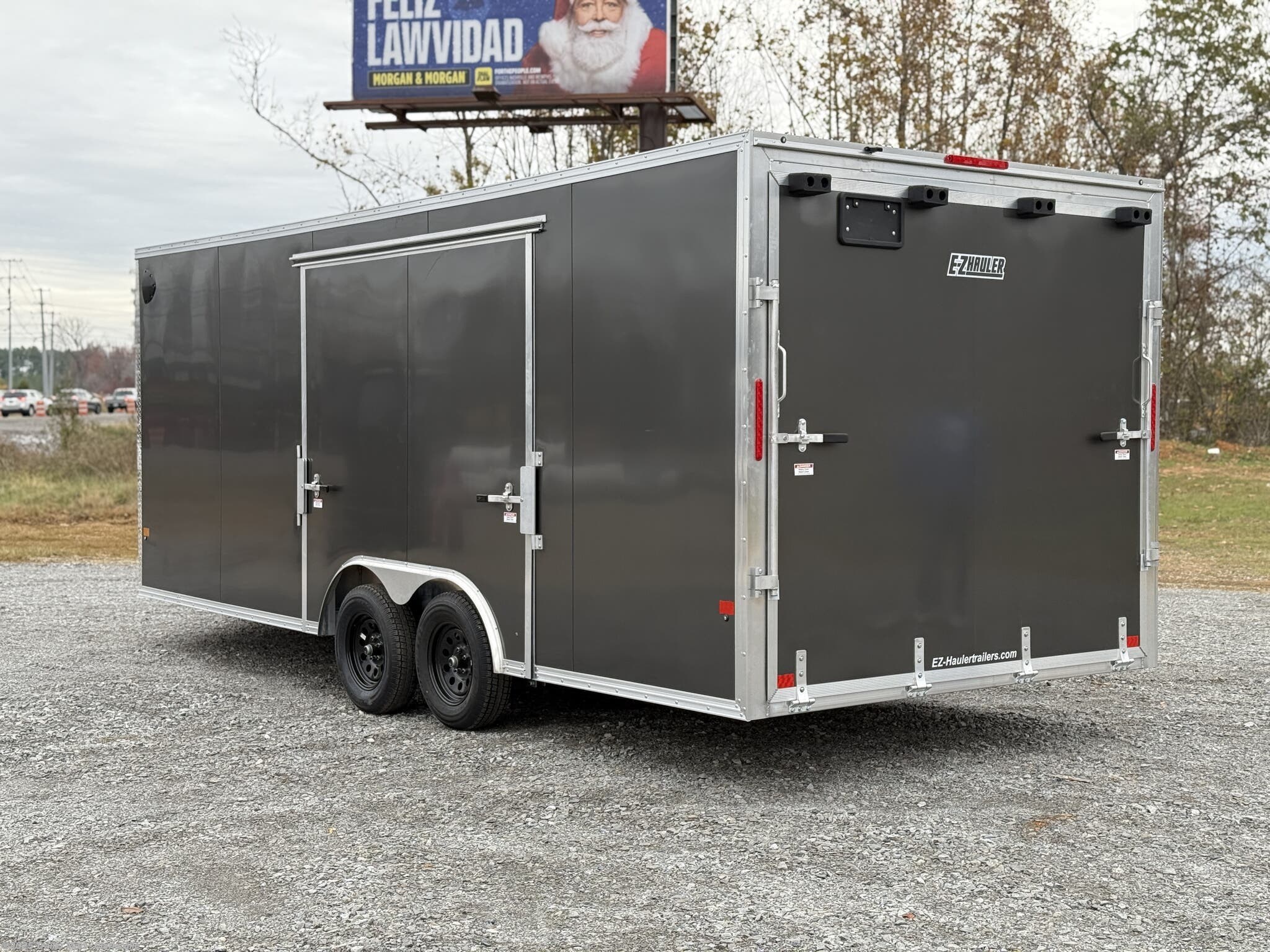 Bringing back one of our most popular units, the ALL NEW EZ-Hauler 8.5x20 enclosed car hauler. Featuring an ALL ALUMINUM FRAME AND EXTERIOR, this trailer is incredibly lightweight. Tipping the scales at just over 2500 lbs, you can comfortably bring this with you for the long haul. Specialized with Trailer Mart's exclusive build, this unit is built upon a 6" BOX TUBING MAIN FRAME leading up to an extended TRIPLE TUBE TONGUE HITCH. This unit won't last long, and with our superior financing, you can take it home TODAY!
