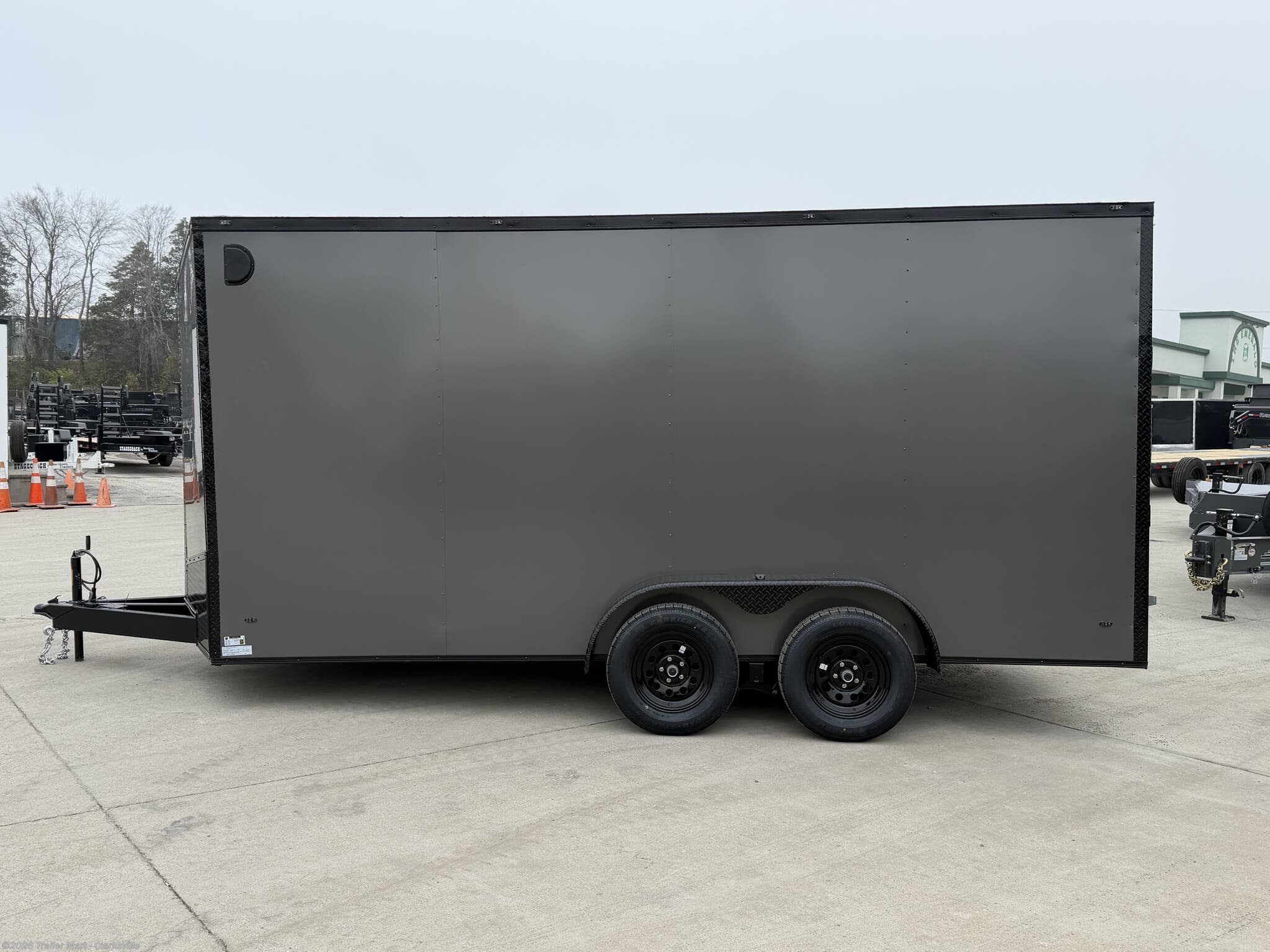 Introducing the Black Label 7x16, this trailer comes fully equipped to safely and smoothly carry your toys tools, or new dining room set! Featuring smooth semi-screwless .080 polycore siding, a full blackout package, full box tubing frame, and 4 floor mounted d-rings, it leaves nothing to be desired.