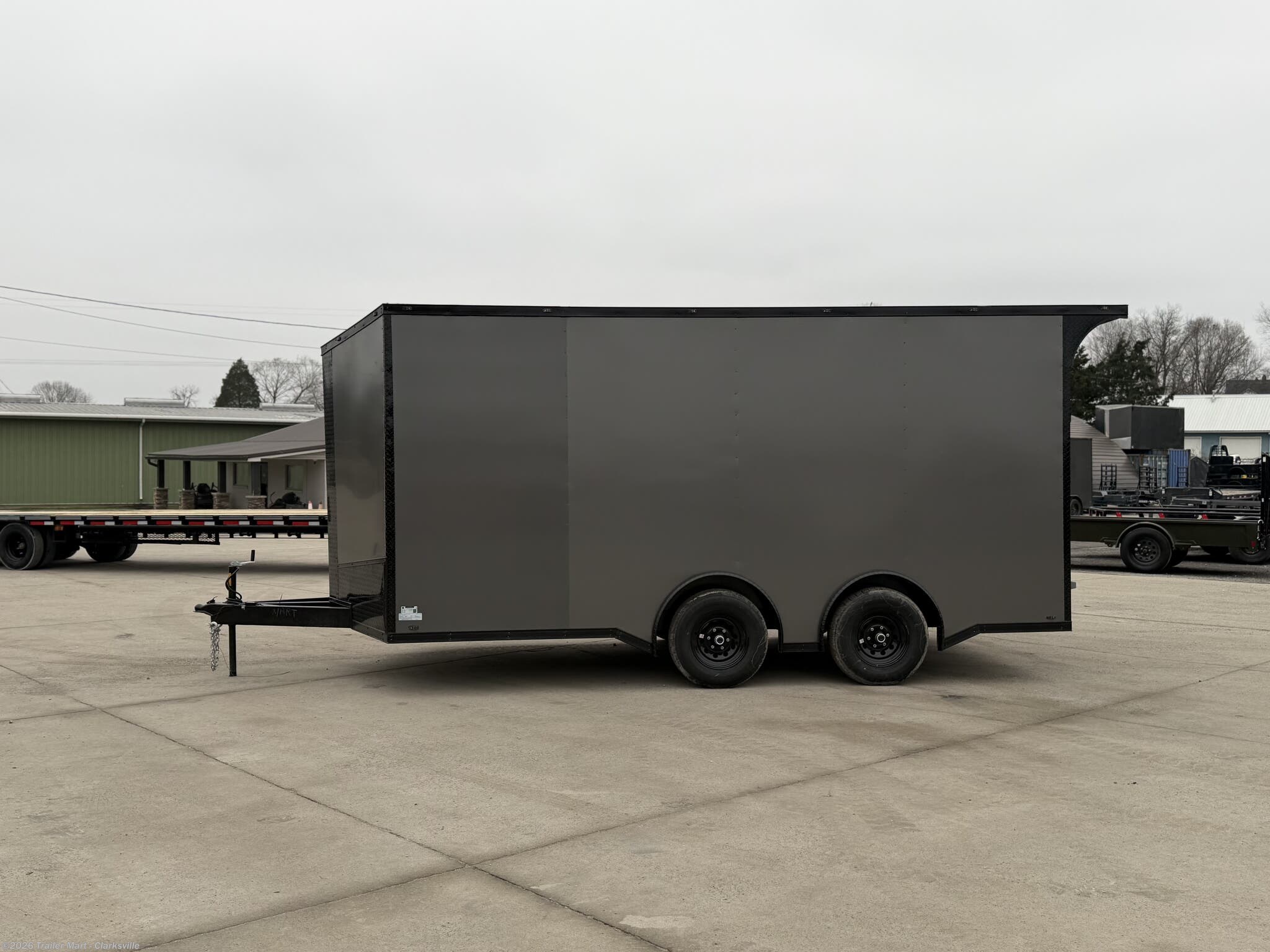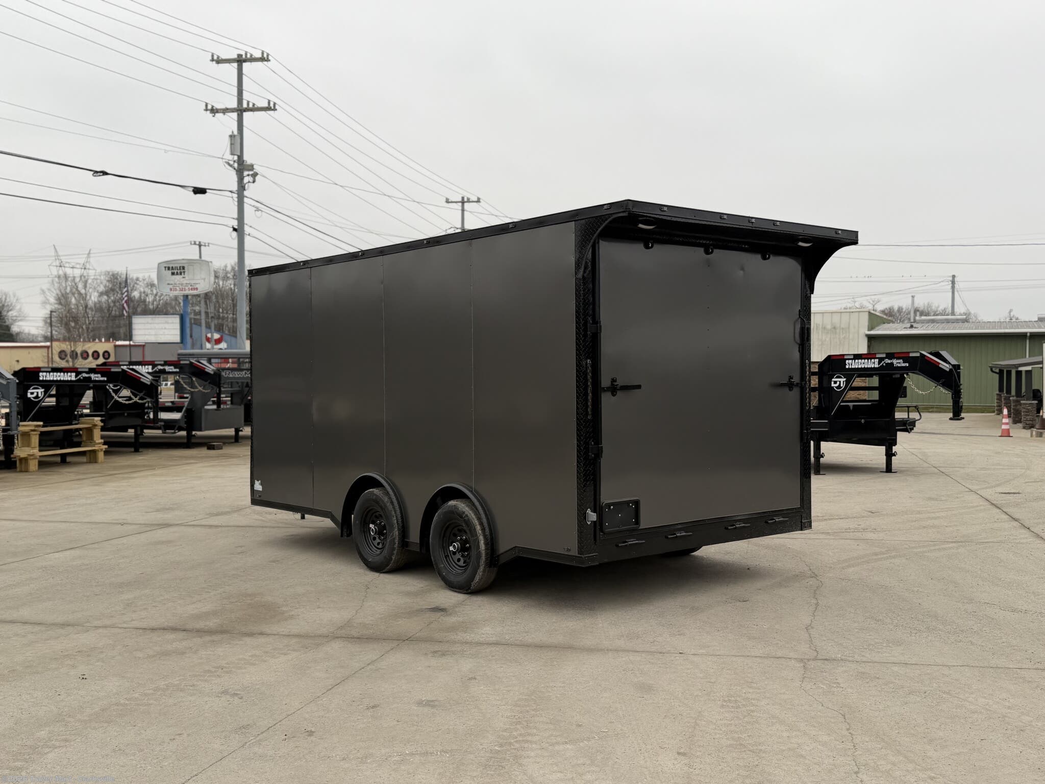 Introducing the Black Label 8.5x16, this trailer comes fully equipped to safely and smoothly carry your toys tools, or new dining room set! Featuring semi-crewless .080 polycore siding, a full blackout package, spread torsion axles for the smoothest ride, and 6 floor mounted d-rings, it leaves nothing to be desired.
