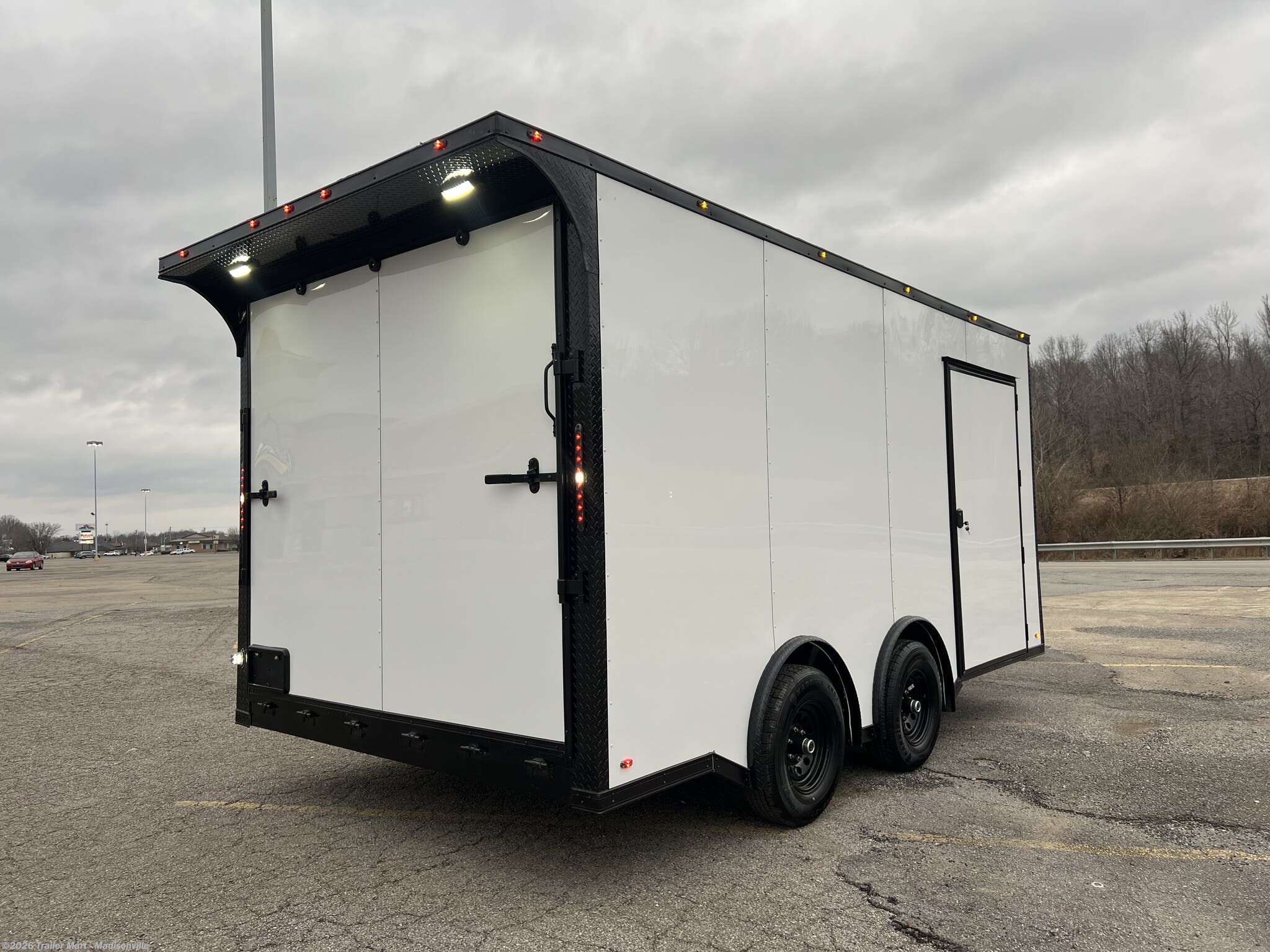 Introducing the Black Label 8.5x16, this trailer comes fully equipped to safely and smoothly carry your toys tools, or new dining room set! Featuring semi-crewless .080 polycore siding, a full blackout package, spread torsion axles for the smoothest ride, and 6 floor mounted d-rings, it leaves nothing to be desired.